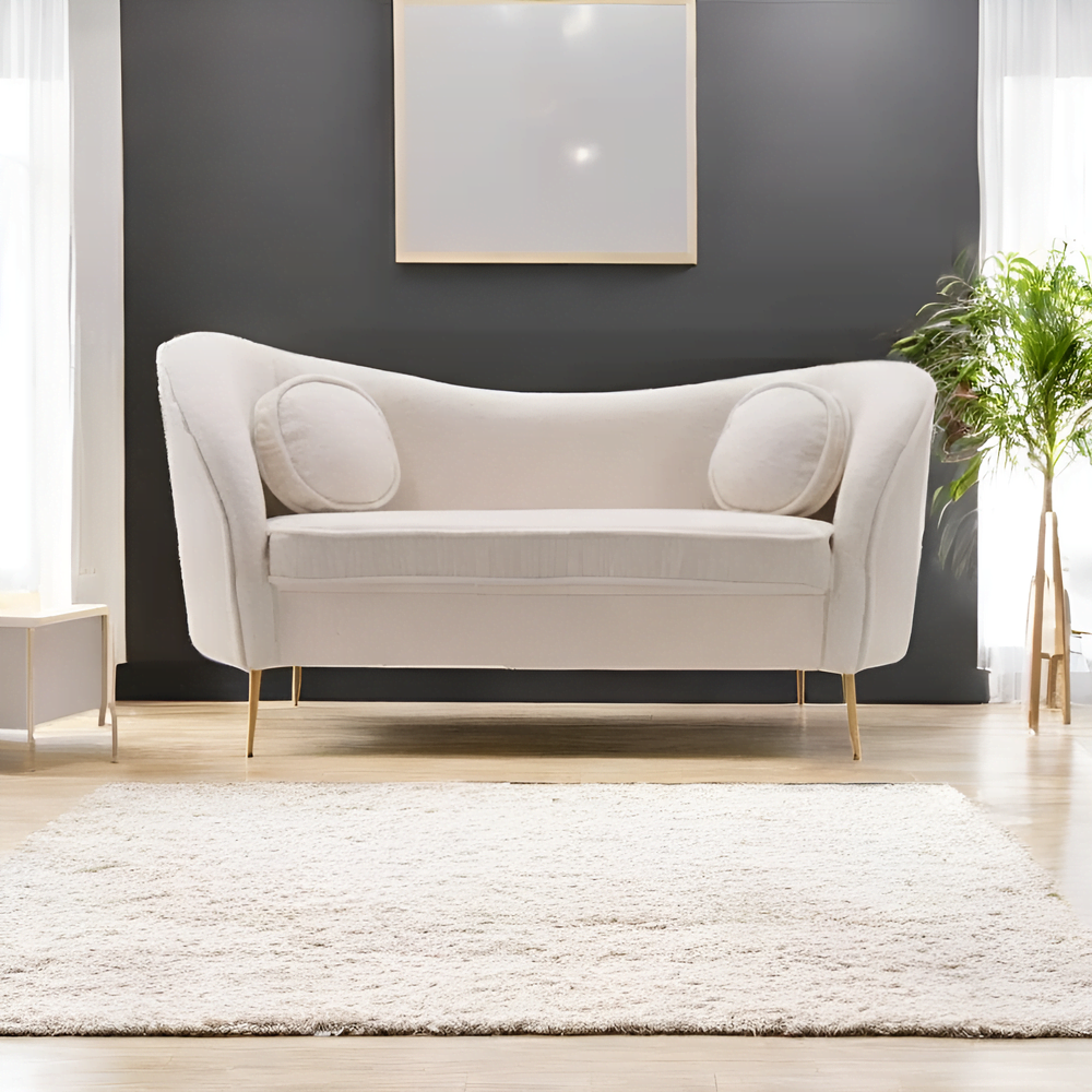 Experience the perfect blend of comfort and simplicity with this inviting sofa, upholstered in ultra-soft teddy bouclé fabric. Designed for those who appreciate understated elegance, it features a minimalist silhouette complemented by two round cushions for added softness. The plush texture and soothing neutral tones ensure effortless integration into any space, bringing both warmth and style to your home.