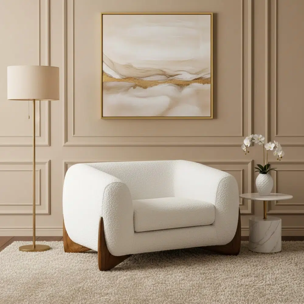 The Boucle Sherpa Arm Chair from Kustom Deco Furniture UAE is designed to elevate your interior with comfort, texture, and refined style. Featuring soft curves, plush cushioning, and a modern silhouette, this luxury accent chair creates a cozy yet sophisticated seating experience.