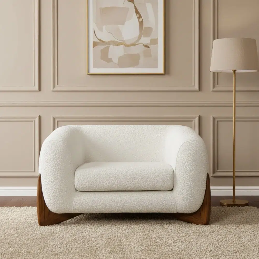 • Luxury boucle accent chair UAE with soft sherpa upholstery