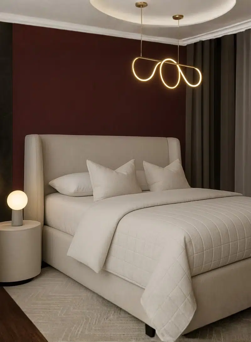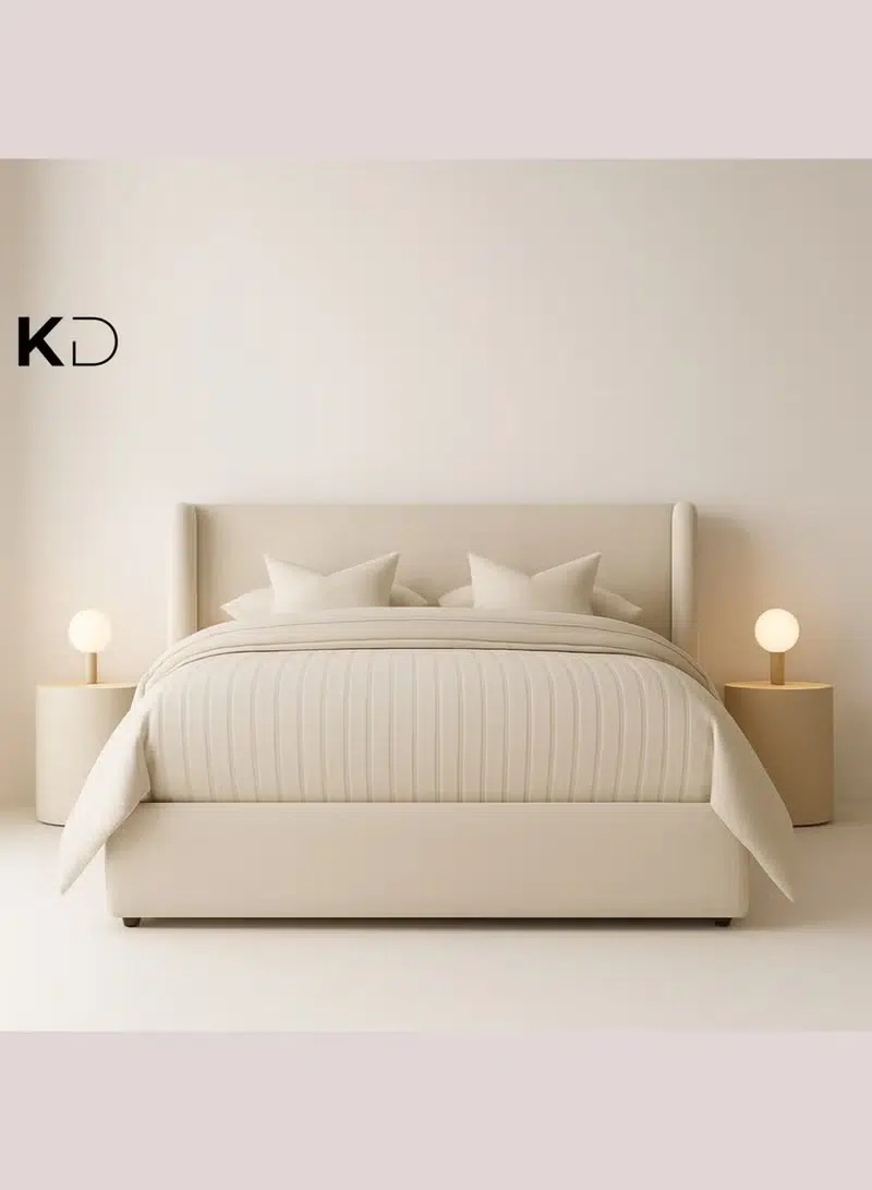 Additionally, this boucle upholstered bed is available in multiple sizes, making it perfect for compact apartments and spacious bedrooms. The flexible sizing makes it one of the best beds for small rooms in Dubai and luxury villas. Its beige finish enhances modern bedroom décor and supports neutral interior styling.