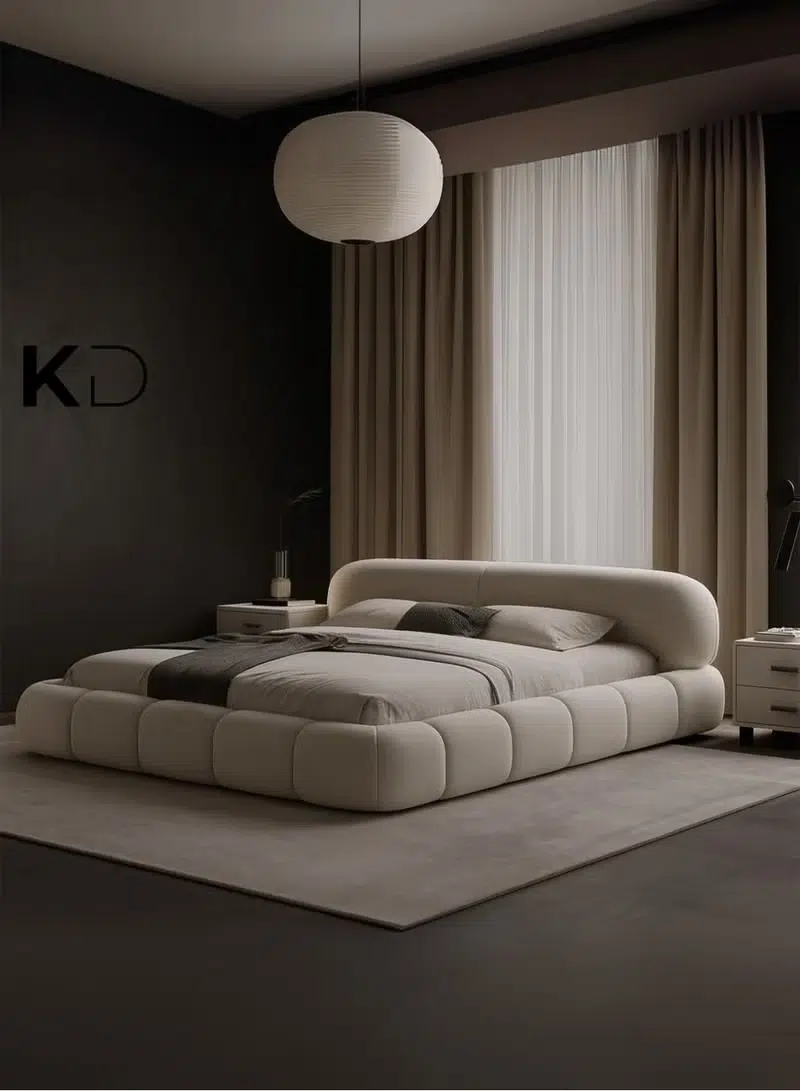 Amara modern bed beige super queen bed modern bedroom furniture Dubai UAE minimalist bed design.