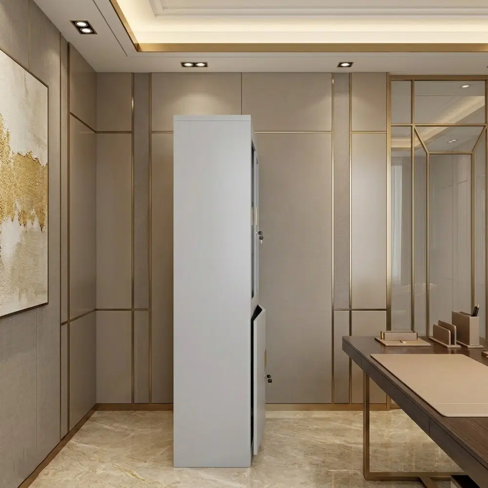 Zenvique metal storage cabinet for office furniture in Dubai UAE with slim beige metal body and minimalist modern designZenvique metal storage cabinet for office furniture in Dubai UAE with slim beige metal body and minimalist modern design
