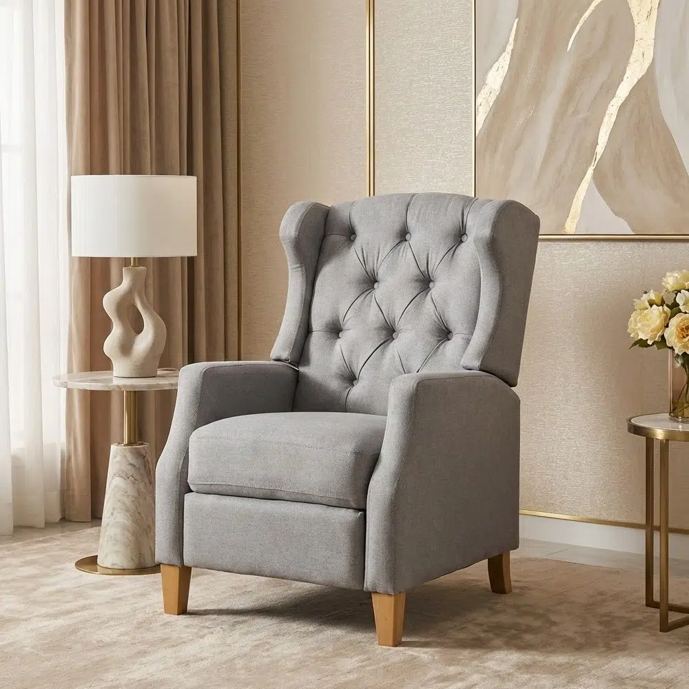 Add timeless elegance to your home with this tufted high-back fabric accent armchair, offering plush comfort and a classic transitional design ideal for UAE interiors.