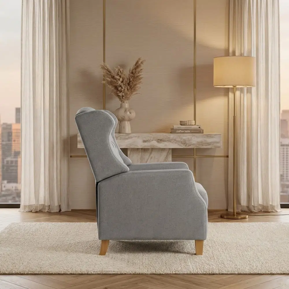 Upholstered in soft, durable polyester fabric, the chair provides a smooth, inviting texture that is easy to maintain. The ergonomic high backrest and padded armrests offer excellent support, making it perfect for long hours of relaxation, reading, or casual seating.