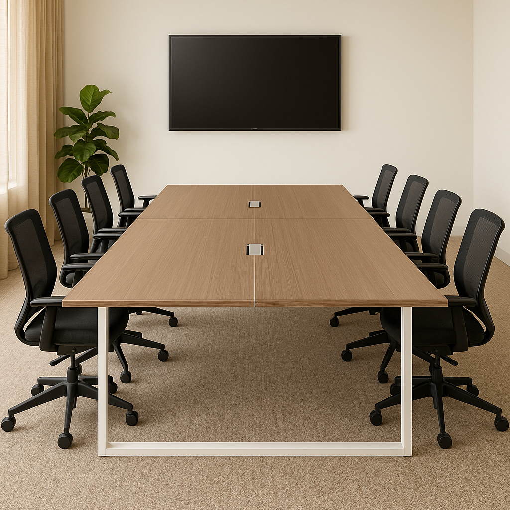 The Axis Conference Table by Kustom Deco blends modern design with durability, offering a spacious and customizable centerpiece for professional meetings.