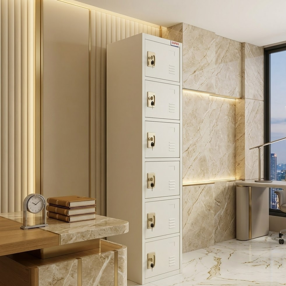 Overall, the Morvique Steel Storage Cabinet is designed for efficient organization in both office furniture setups and home environments. Its vertical structure allows it to fit into compact spaces while maximizing storage capacity. The clean form ensures it blends easily into modern interiors without overwhelming the room.