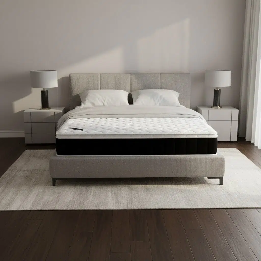 Height: 28cm, Bonnell spring + layers of soft foam + Quilted Top Panel + High Tensile Supports + Knitted Bio Rhythmic Fabric