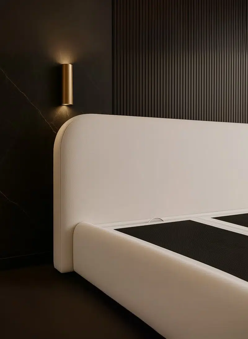 Quorvessa Wavy Upholstered Bed White Fabric Curved Headboard Custom Made Luxury Furniture Dubai UAE Modern Minimalist Bedroom Design