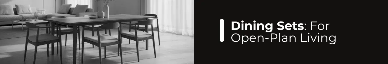 Many modern homes in the UAE feature open-plan layouts where the living room flows into the dining area. A cohesive dining set is key.